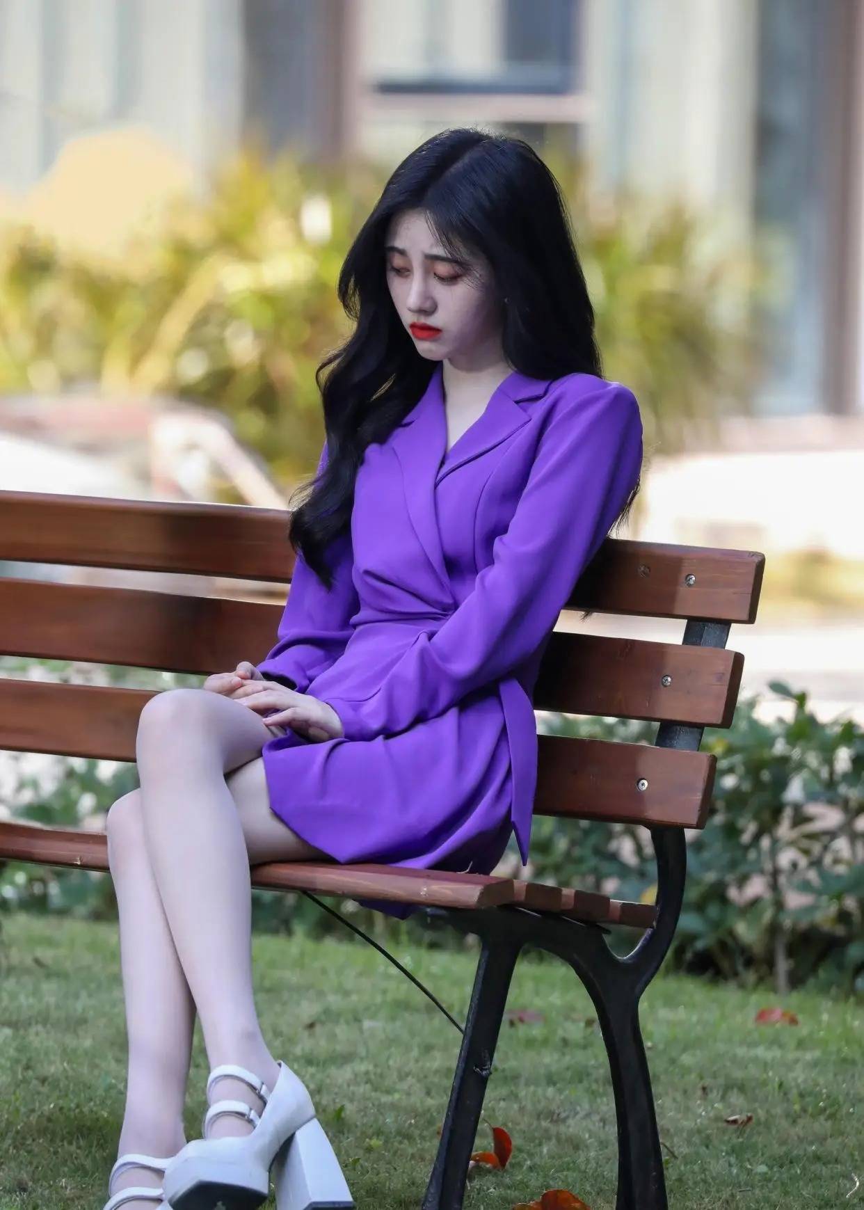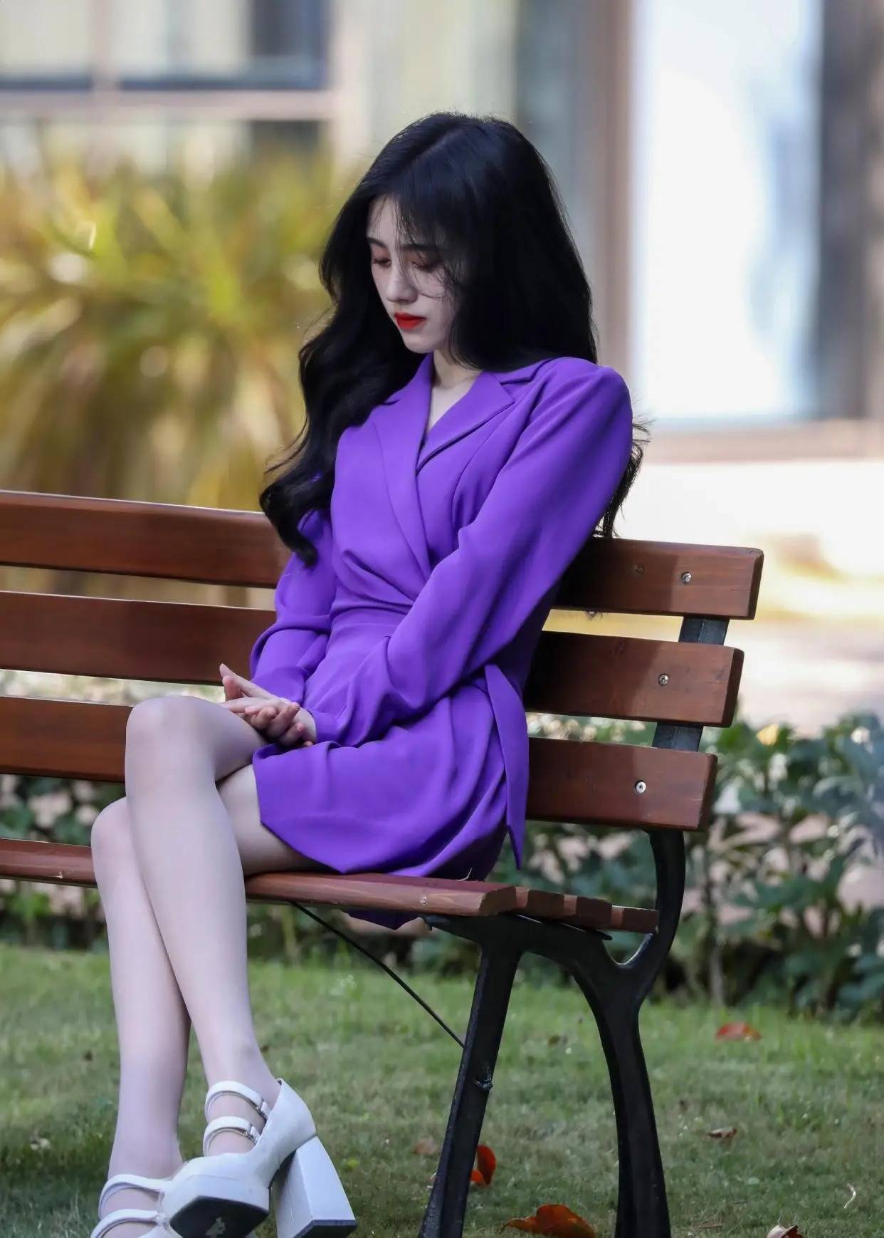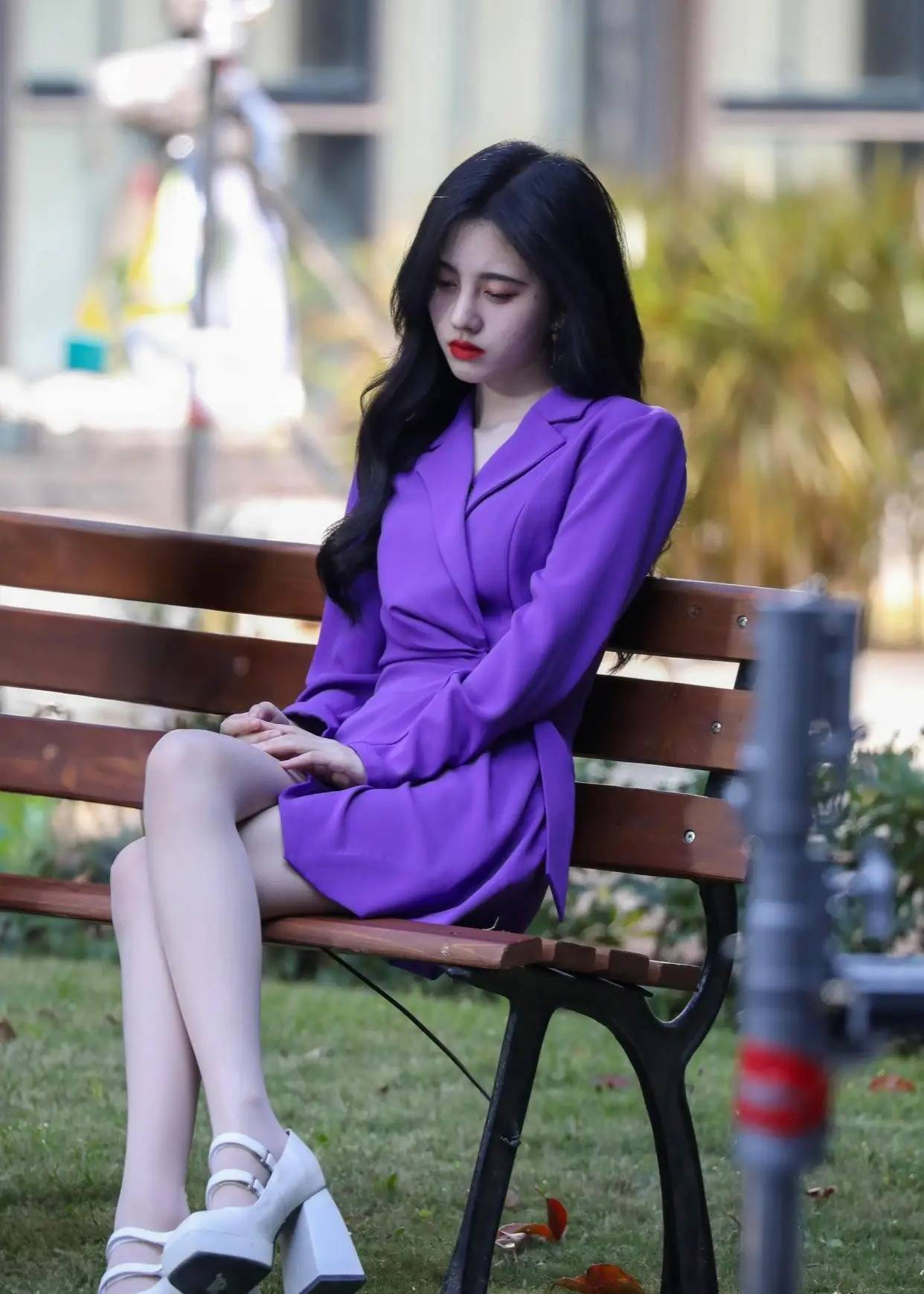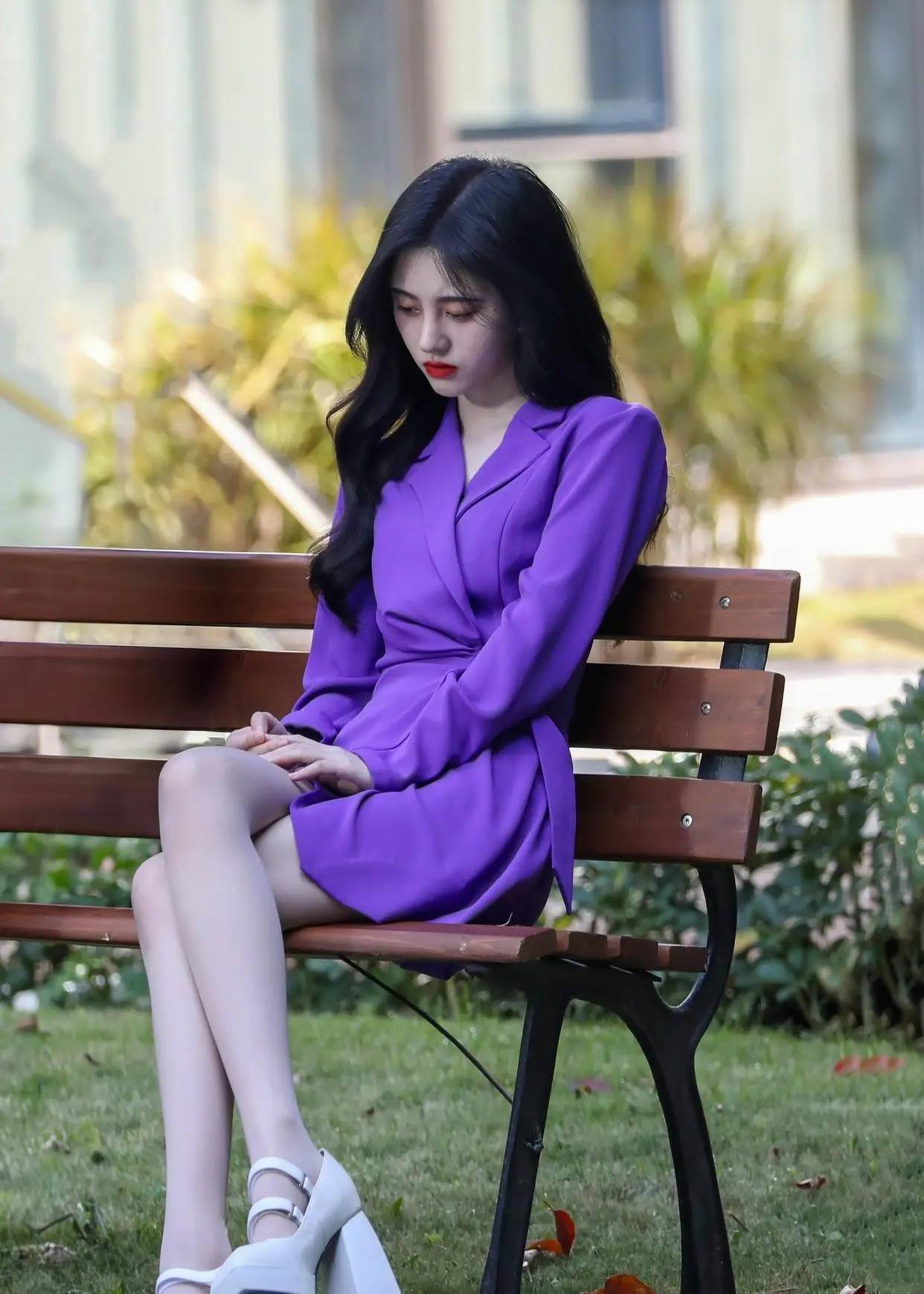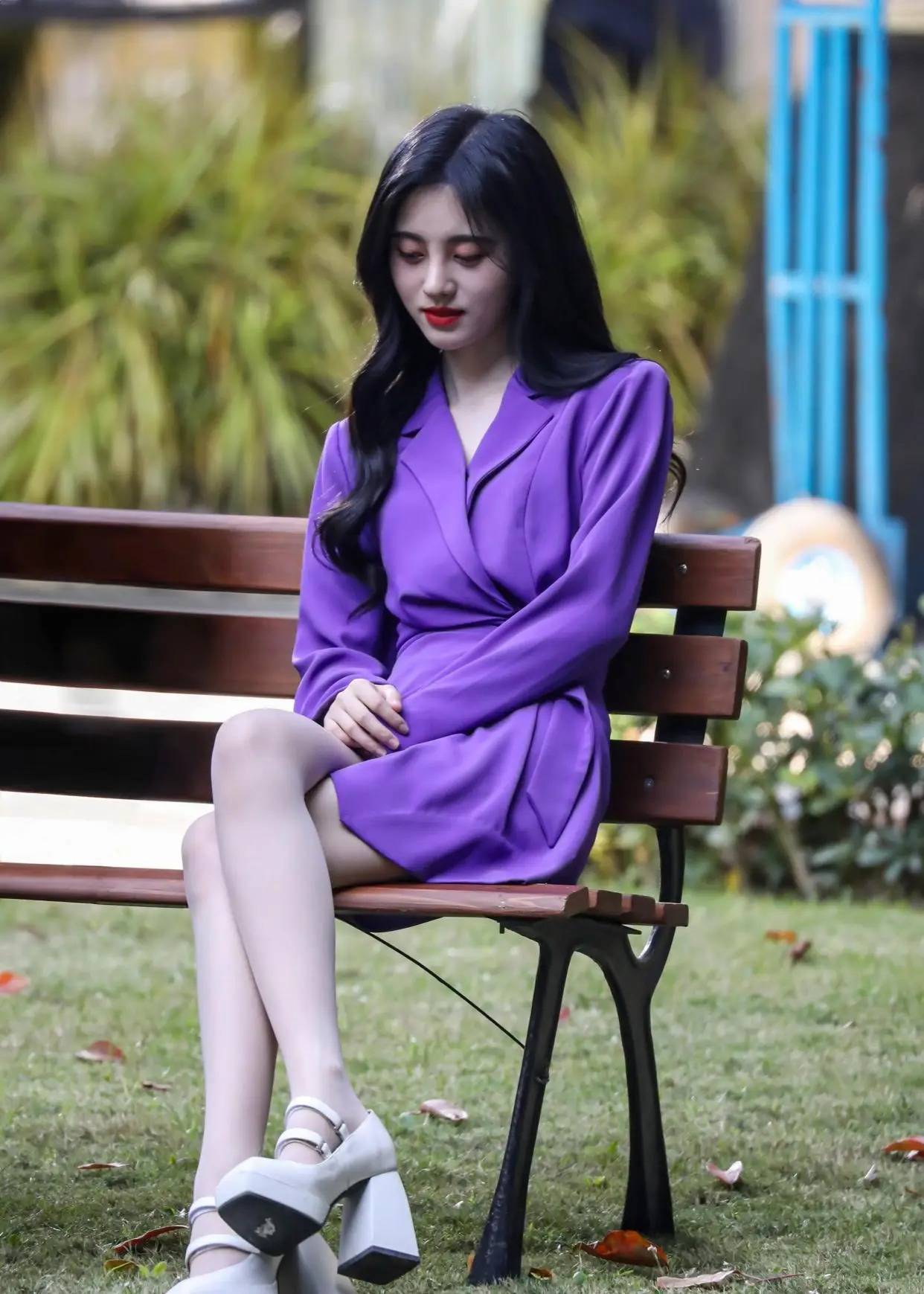 #鞠婧祎 #时尚穿搭 #紫色西装裙 #白丝